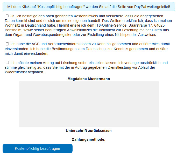 ➡️ Zum Abschluss klicken Sie auf „Kostenpflichtig beantragen“, um die Bezahloptionen zu öffnen.