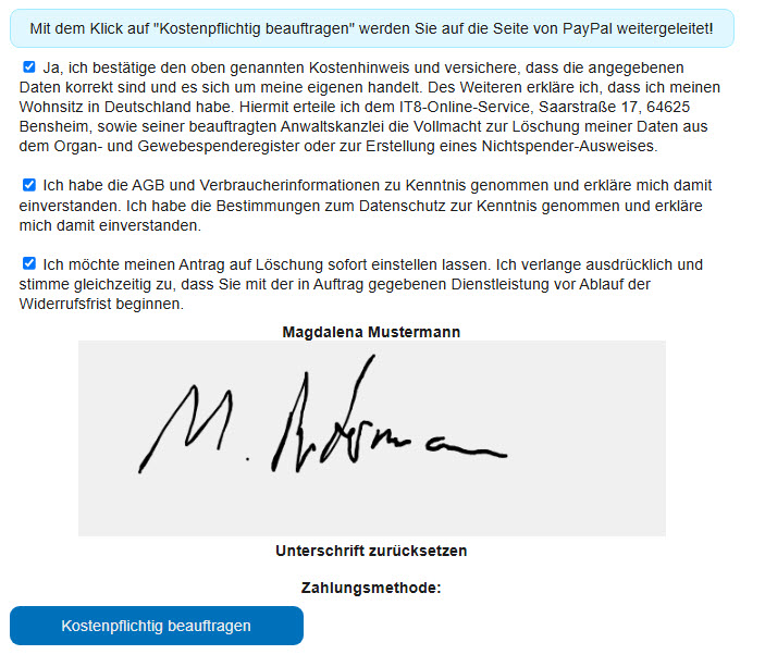 ✍️ Falls Ihre Unterschrift nicht korrekt angezeigt wird, können Sie sie durch Klick auf „Unterschrift zurücksetzen“ neu eingeben.