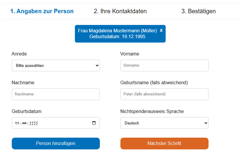 Schritt für Schritt Anleitung des Antrage – Nichtspender-Ausweis –